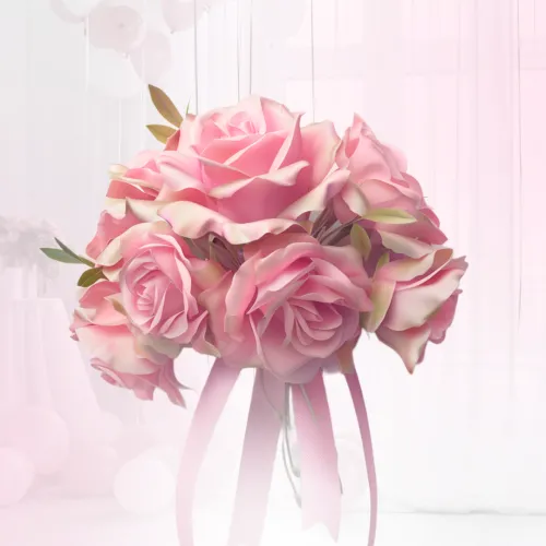 Букет из розовых роз под ленту