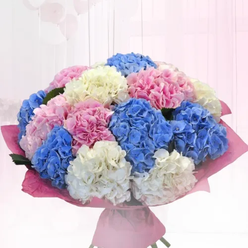 Вариант—Стандарт - гортензия-3 штуки,гипсофила,упаковка,лента