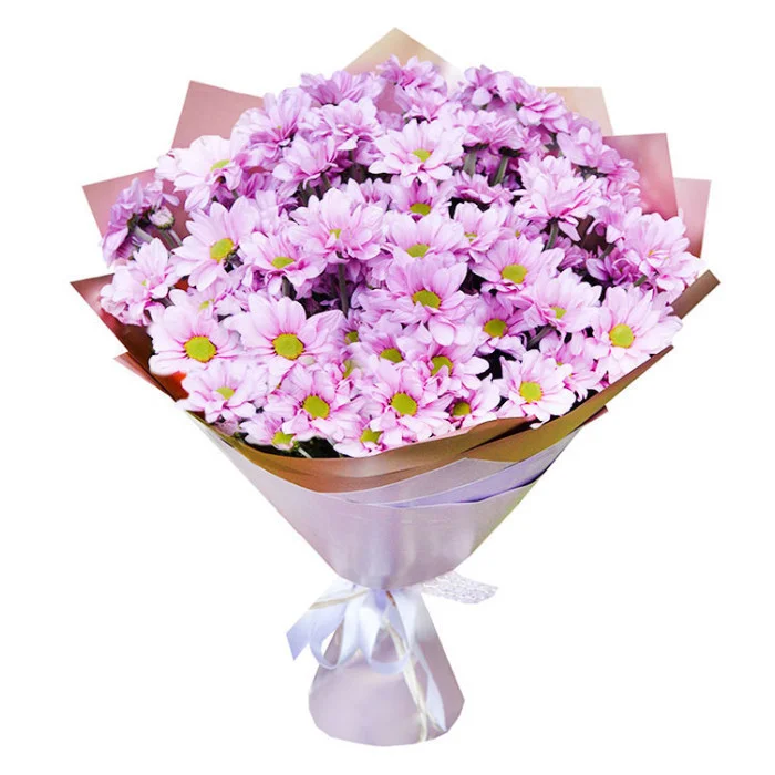 Пышное облако из розовых кустовых хризантем удивит и порадует каждую женщину, Вы можете преподнести такой букет по случаю праздника, на свидание или даже на юбилей.