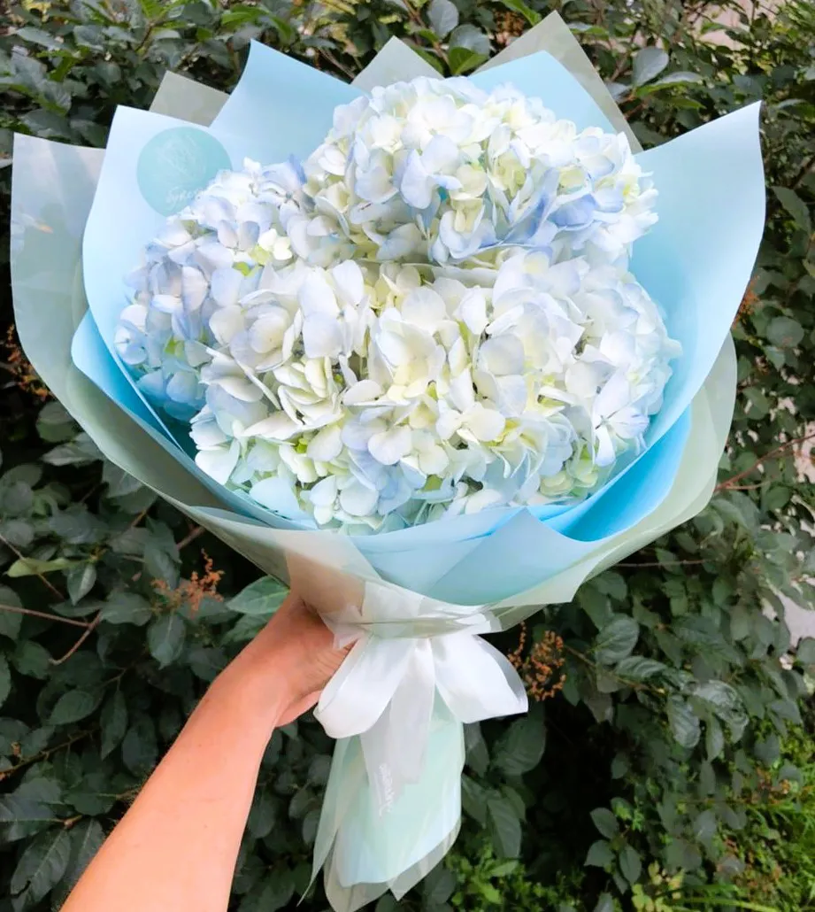 Каждая гортензия, словно маленький шедевр природы, привлекает внимание пуговками мелких лепестков, искрящихся на солнце. Этот букет наполняет пространство свежестью и гармонией, даря ощущение спокойствия и умиротворения. Особая прелесть голубых гортензий заключается в их способности передавать эмоции: они могут быть как символом любви и дружбы, так и выразить глубокую тайну.