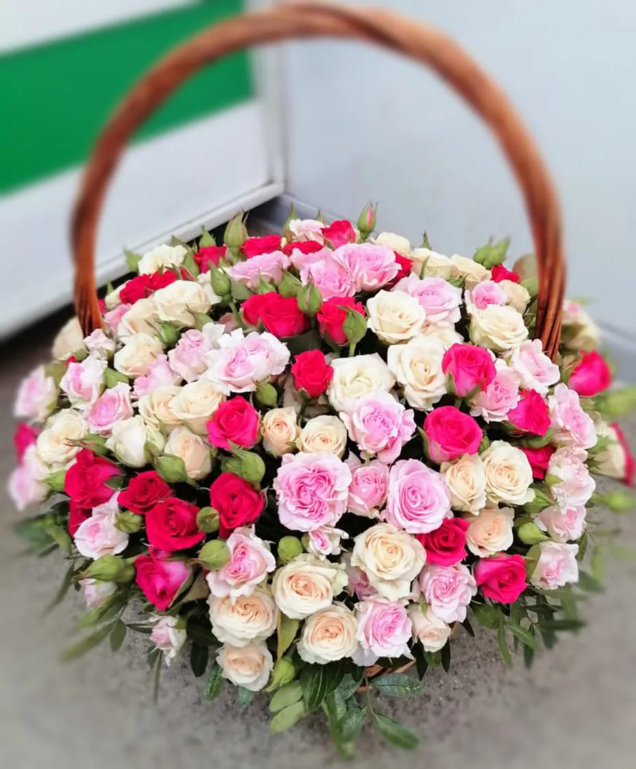 • Стандарт (кустовая роза - 11 шт., зелень, оазис, корзина)
